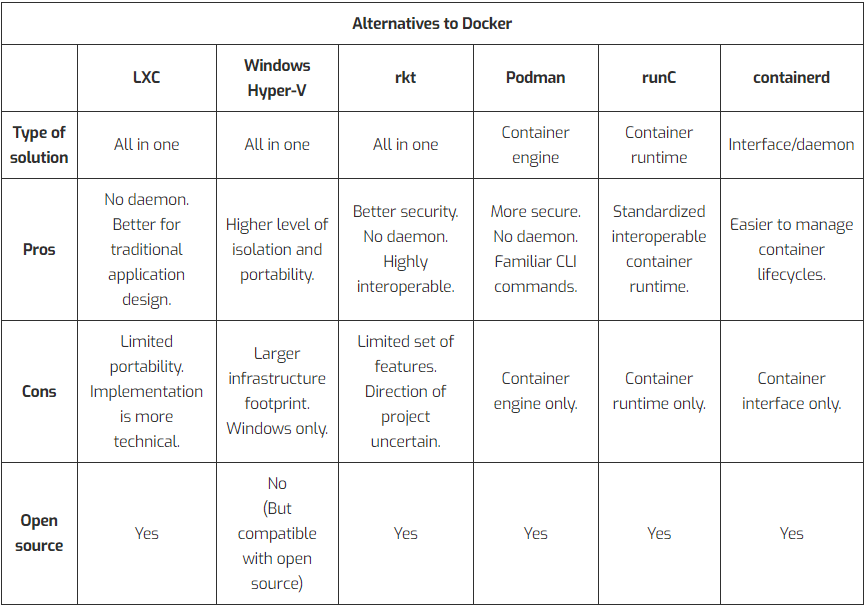 Tuy nhiên Docker không phải là người chơi duy nhất trong mảng container. Dưới đây là các nền tảng tương tự tất nhiên là không đồng nhất.