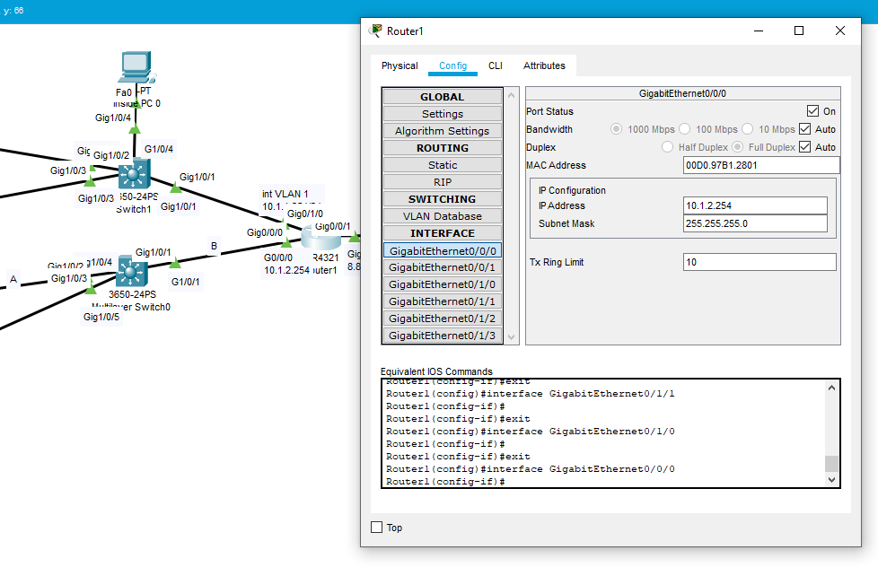 vậy là chúng ta đã khai báo thiết bị ip : 10.1.1.1 dải mạng subnet 24 với tên interface là eth0 vào thiết bị.
