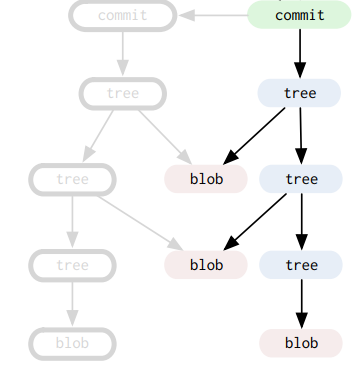 Commit : Rễ cây, điểm theo dõi đầu tiên chỉ ra mỗi lần commit. Nó sẽ trỏ vào tree root là điểm tree chính xong trỏ sang các đối tượng con trong file.