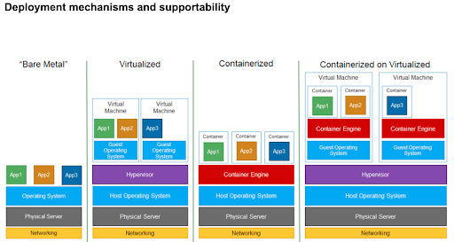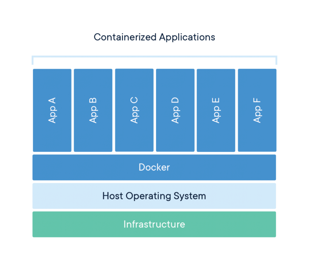 Tiếp theo là Container. Container có thể nói đã manh mún từ khá sớm từ khi linux bắt đầu thêm vào khái niệm namespace để có thể phân tách hệ điều hành của mình ra thành các khu vực cụ thể. Vậy thì điều này dẫn tới việc gì? Khi sự tách biệt được rõ ràng chúng ta có thể tách hoàn toàn OS nền ra chạy độc lập, Các ứng dụng khởi chạy dù dùng chung một OS nhưng lại có thể tách biệt hoàn toàn đồng thời OS nền cũng khó có thể bị ảnh hưởng bởi các ứng dụng chạy trên nó. Tất cả các điều trên biến hệ thống thành những mảnh ghép tại đó OS là mảnh ghép lớn có các mảnh ghép nhỏ hơn cắm ở trên. Nó dễ dàng thêm các mảnh ghép, thay thế, cắm thêm các mảnh cùng màu hay tháo rời các phần nhỏ nhưng vẫn giữ được bản thân không bị can thiệp.